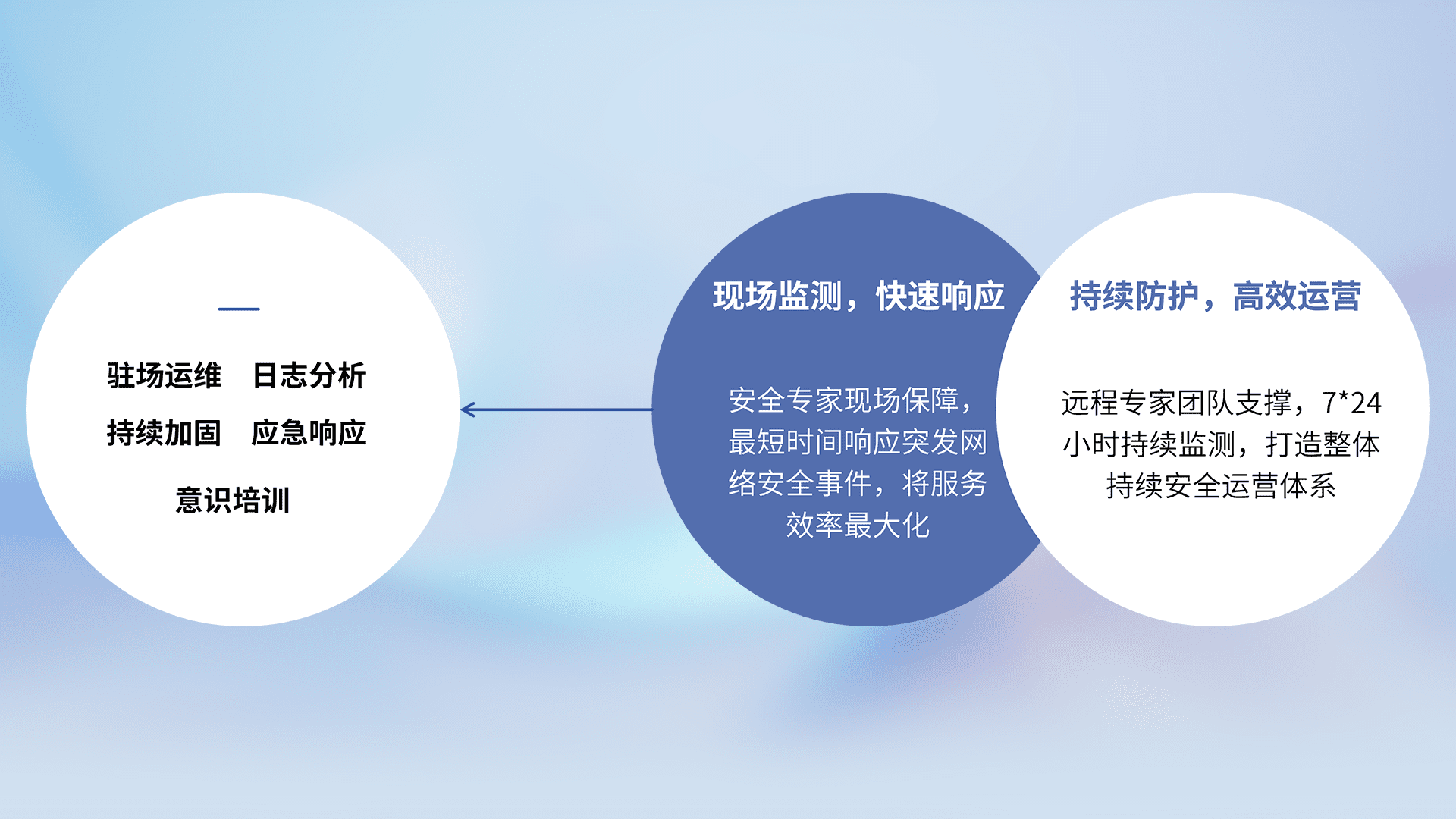 7X24小时持续监测安全事件,保持安全策略有效性,降低资产脆弱性风险,,,精准拦截黑客攻击,,,减少被黑客利用的机会,,,,第一时间遏制,,,,降低损失。。